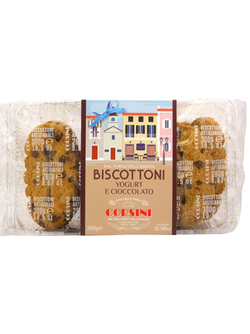 Biscottoni Yogurt e Cioccolato di Corsini, in vaschetta, sono biscotti perfetti per colazione o merenda, da inzuppare nel latte.