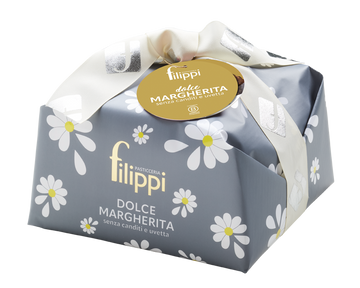 Le sue caratteristiche distintive rendono il Dolce Margherita un prodotto unico nella gamma di Pasticceria Filippi. L'impasto è preparato senza burro, in quanto viene utilizzato esclusivamente Olio Extra Vergine di Oliva di alta qualità, garantendo così sia una maggiore leggerezza sia un profilo aromatico moderno e delicato. Inoltre, è un dolce senza canditi né uvetta, perfetto per chi predilige un lievitato con un gusto pulito e semplice, senza inclusioni di frutta. Viene offerto in un formato più piccolo da 750 g, rendendolo ideale per il consumo quotidiano o come dessert alternativo al Panettone. Nonostante l'assenza di burro, mantiene una notevole sofficità, tipica dei grandi lievitati, grazie alla lunga e attenta lievitazione naturale.