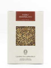 Si intende per semiperlato il Farro intero al quale viene asportato un leggerissimo strato esterno di crusca