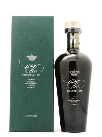 Le varietà coltivate sono le tipiche toscane come il Frantoio, il Moraiolo e il Leccino ma anche varietà più locali come il Gremignolo di Bolgheri, l'Olivastro di Suvereto e la varietà Ornellaia che ha preso il nome dal podere attorno al quale oggi si sviluppa la Tenuta. Gli olivi crescono ai margini della macchia mediterranea, tra le ginestre e le sughere. Il terreno povero e il clima più severo delle colline danno un'oliva più piccola dai sapori molto intensi. Questo Olio Extra Vergine d'Oliva è ottenuto dalla prima frangitura delle olive, nel rispetto della tradizione. L'aspetto velato è dovuto alla presenza di particelle di polpa di oliva in sospensione, tipiche dell'olio nuovo, che con il tempo si depositano sul fondo della bottiglia. La raccolta precoce effettuata a mano e la frangitura "soffice" determinano una produzione limitata di quest'olio.