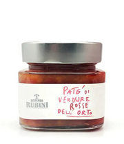 Il Patè di Verdure Rosse di Dispensa Rubini è un perfetto equilibrio tra dolcezza, freschezza e struttura, realizzato interamente con verdure rosse coltivate nei propri orti di famiglia. Le verdure vengono raccolte a giusta maturazione, tritate e cotte a bassa temperatura, poi arricchite con olio extravergine di oliva di Brisighella per valorizzare il gusto genuino. Il risultato è un patè fluido e vellutato, con note amare, dolci e piccanti ben bilanciate, capace di esprimere tutta l’essenza delle materie prime.