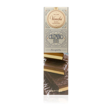 Stecca di cremino al cioccolato gianduia alle nocciole ricoperto di cioccolato fondente.