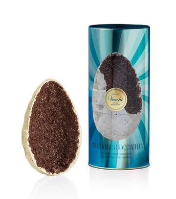 L'uovo Gourmet Venchi Chocoviar Stracciatella è un'laternanza di sapori tra la dolcezza del cioccolato bianco arricchito di panna e fave di cacao tostate sparse nell'impasto e l'interno croccante di nibs al latte.