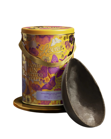 Uovo di Pasqua artigianale realizzato con cioccolato fondente di alta qualità al 70% di cacao. Prodotto dalla storica casa torinese Leone (dal 1857), offre un gusto intenso e avvolgente, perfettamente bilanciato tra note amare e dolci. Ideale per gli amanti del cioccolato puro e come regalo pasquale raffinato.